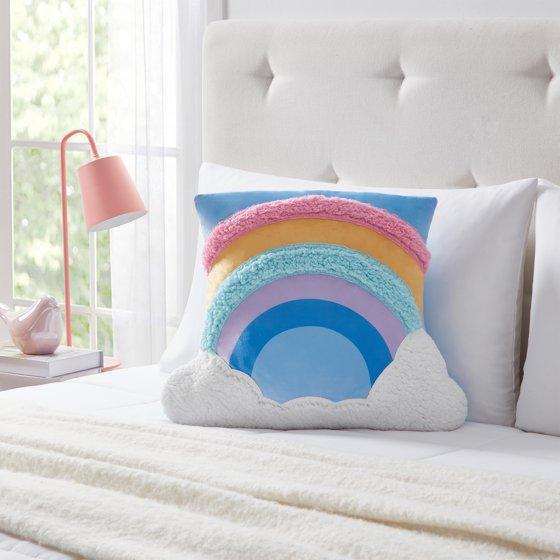 The Your Zone 18" x 18" Multicolor Rainbow Snuggly Decorative Pillow is the perfect birthday, holiday, special occasion, or "just because" gift for kids who can't get enough of rainbows. This cozy decorative pillow features a cheerful rainbow and cloud design with an irresistibly soft and squishy filling that kids will love to snuggle with from playtime to bedtime. You can keep this 18 x 18-inch pillow looking and feeling fresh by spot cleaning as needed. Mix, match, and collect more Your Zone squishy decorative pillows for kids – there are five styles to choose from! (Each decorative pillow is sold separately.)