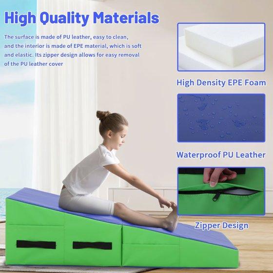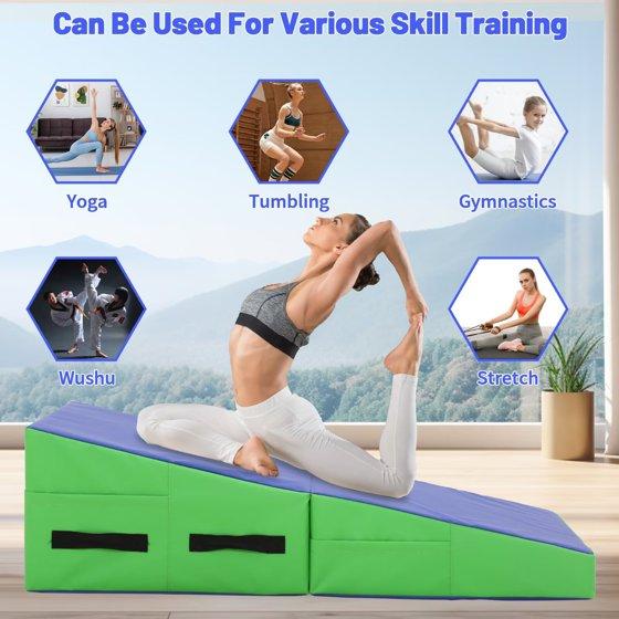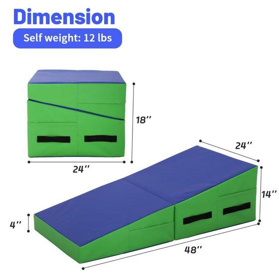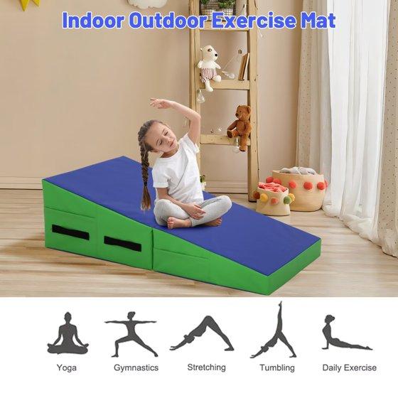 - Durable Materials for Long-Term Use: This 48x24-inch incline gymnastics mat is made of high-density foam that offers strong shock absorption, protecting joints during tumbling, stretches, or yoga. The outer layer is a tear-resistant, water-resistant fabric that stands up to indoor and outdoor use—resisting scrapes from concrete or grass, and repelling spills or sweat. It maintains shape even with frequent folding and heavy use, making it suitable for home gyms, backyard practice, or studio sessions.