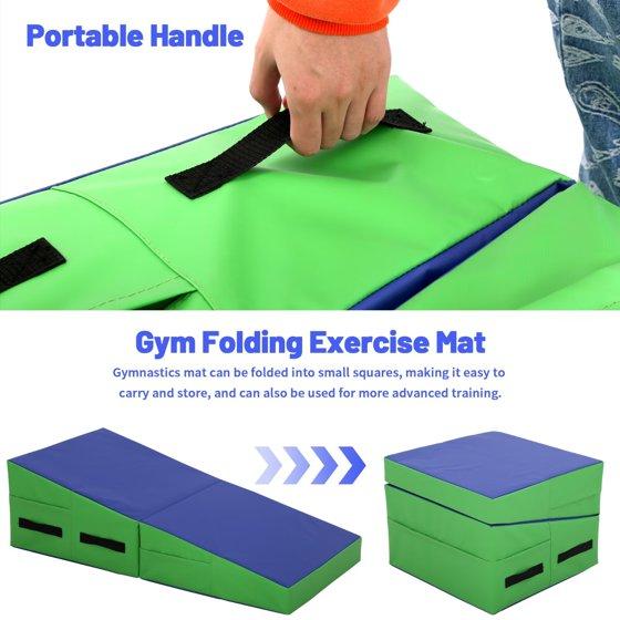 YRLLENSDAN 48x24 inch Gymnastics Mat Wedge for Tumbling Exercise Yoga, Folding Cheese Mat for Gymnastics, Indoor/Outdoor Incline Mat With Non-Slip Surface & Handle, Blue