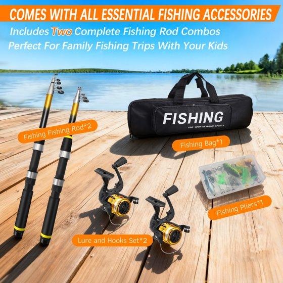 - Full set of fishing sets: Our children's fishing set contains telescopic fishing rods, spinning reels, fishing lines, fishing tackle, travel bags and various accessories. With this children's fishing set, you and your children can enjoy hours of fishing fun with your family.