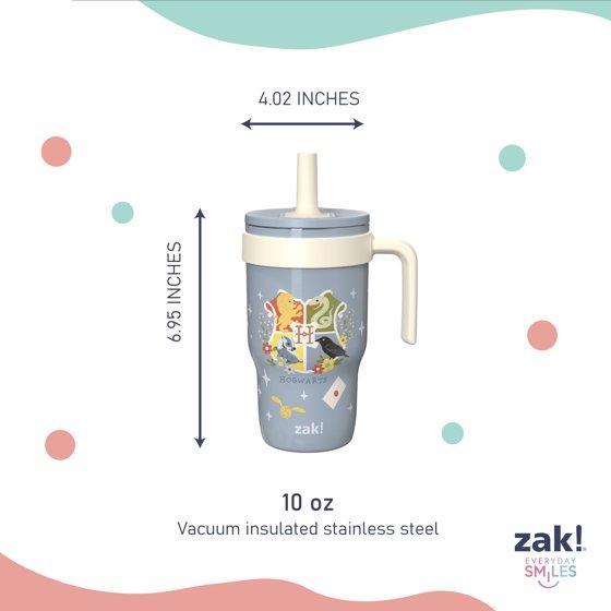 Zak Designs 10oz Harry Potter Kids Handle Tumbler, Stainless Steel Cruiser Tumbler with Soft Silicone Straw, Leak-Proof, Easy to Hold, Blue