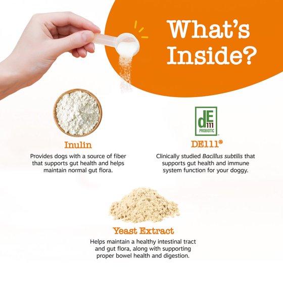 - Featuring DE111 - This supplement contains DE111, which is a clinically studied Bacillus subtilis that supports gut health and immune system function for your doggy.