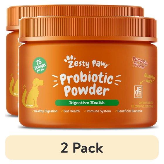 (2 pack) Zesty Paws Probiotic Powder for Dogs, for Gut Health & Digestive Support, 150g Jar