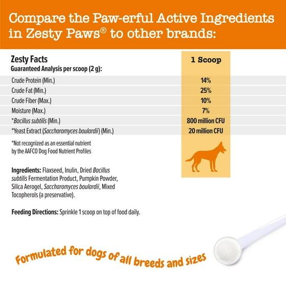 - Tummy Support in a Tasty Powder! - Zesty Paws Probiotic Powder combines a premium probiotic with Inulin (fiber) and Yeast Extract to support digestion and immune function for your pet.