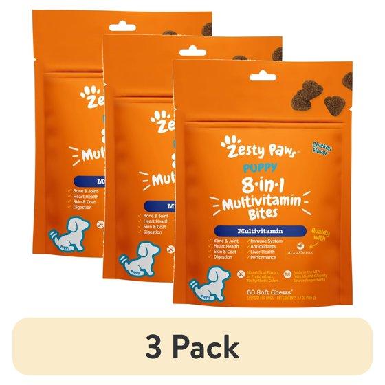 (3 pack) Zesty Paws 8-in-1 Multivitamin Bites for Puppies, Chicken, Overall Wellbeing, 60 Count