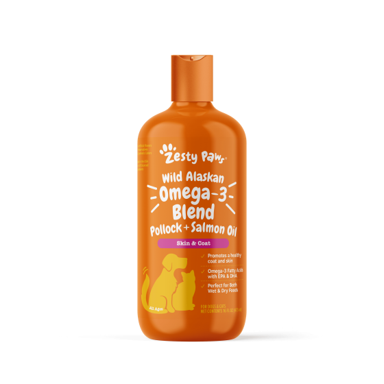 - The Zestiest Catch for Your Pet - Zesty Paws Wild Alaskan Omega + Salmon Oil is a liquid fish oil that provides Omega-3 Fatty Acids (EPA and DHA) that support your pet’s skin and coat health.