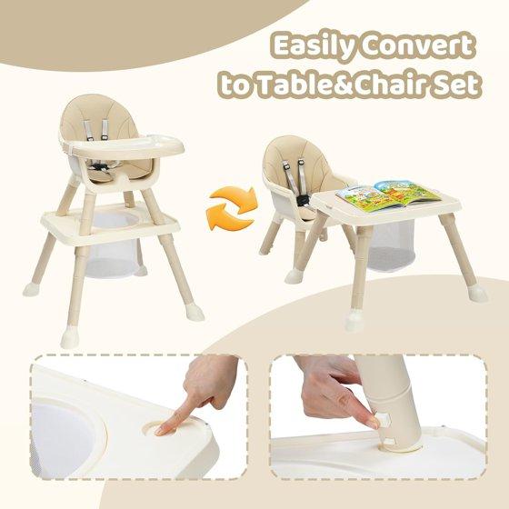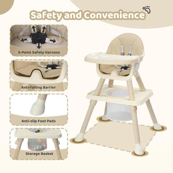 Zimtown Baby High Chair, 6 in 1 Convertible High Chairs for Babies and Toddlers, Portable Feeding Chair with 5-Point Safety Harness, Adjustable Dining Tray, Beige