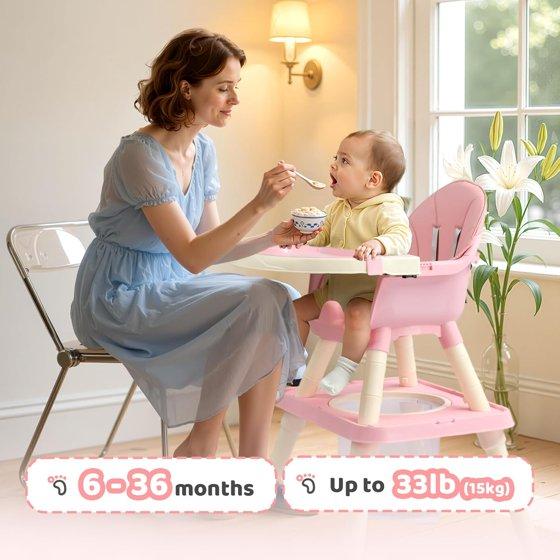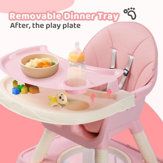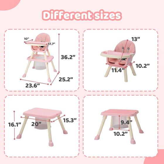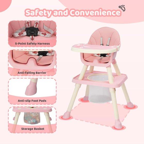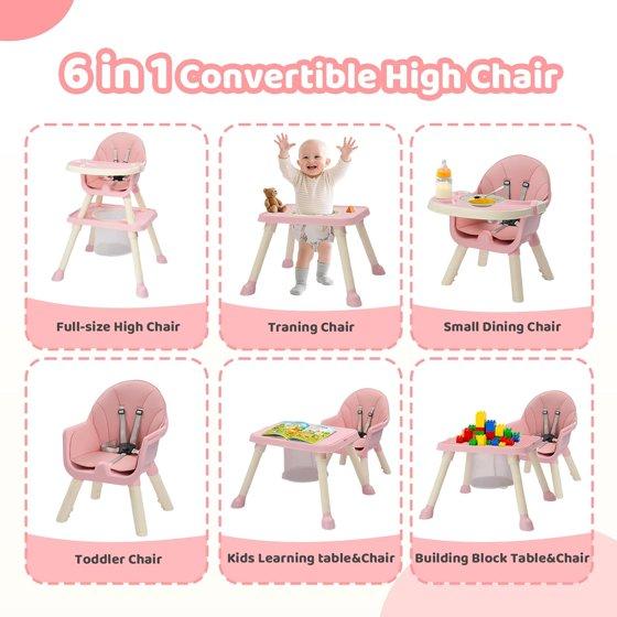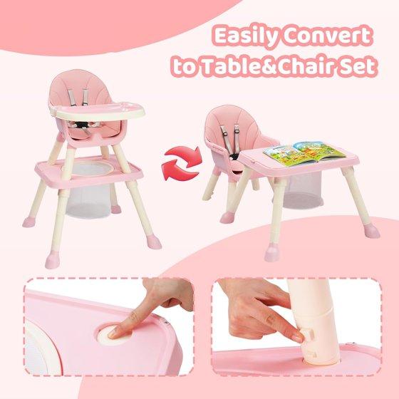 Zimtown Baby High Chair, 6 in 1 Convertible High Chairs for Babies and Toddlers, Portable Feeding Chair with 5-Point Safety Harness, Adjustable Dining Tray, Pink