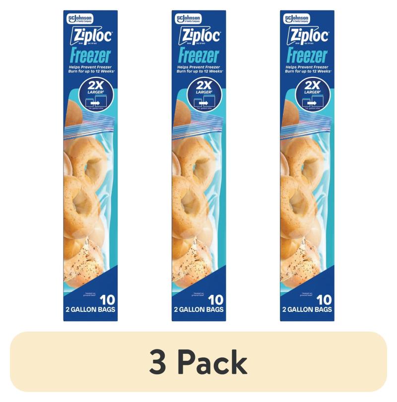(3 pack) Ziploc® Brand Freezer Gallon Bags, Large Food Storage Bags, Zipper, 10 Count