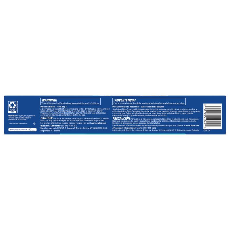 - 10-2 gallon Ziploc® bags made of durable BPA-free plastic