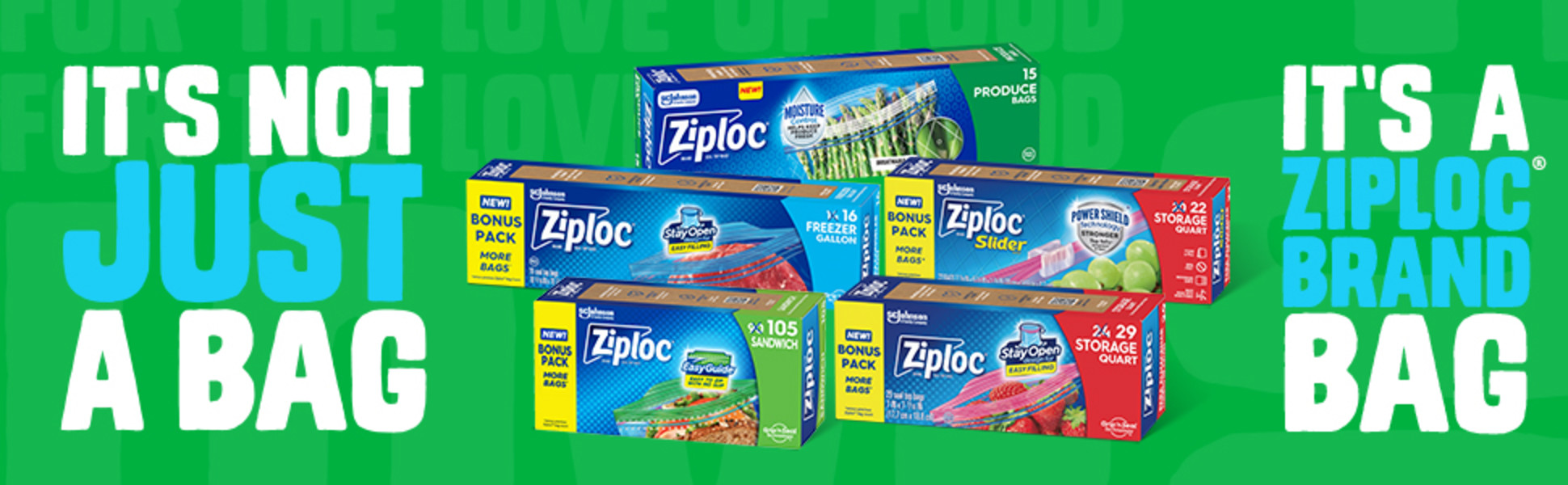 - Also try Ziploc® brand bags in freezer, storage, sandwich and snack sizes