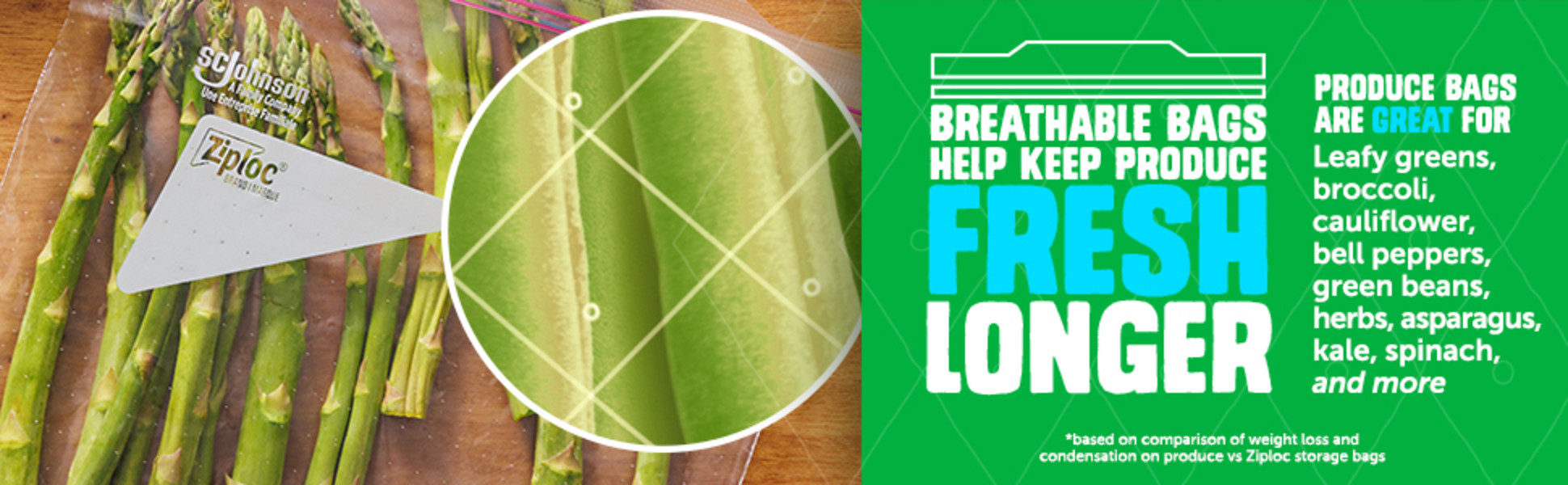 - Fresh Produce: Ziploc® produce storage bags help regulate moisture to keep produce fresh & crisp