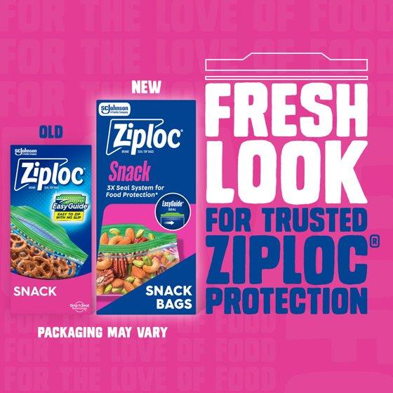 Ziploc® Brand Snack Bags with EasyGuide™ Texture, Grip 'n Seal Technology™, 100 Count