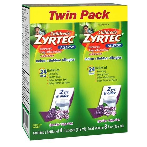 Zyrtec 24 Hr Children's Allergy Syrup, Grape, Twin Pack of 4 fl. oz