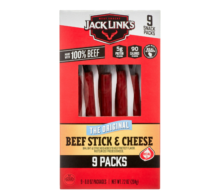 (10 pack) Jack Link's Original Beef Sticks & Cheese, 0.8 oz., 9 Count, Individually Wrapped