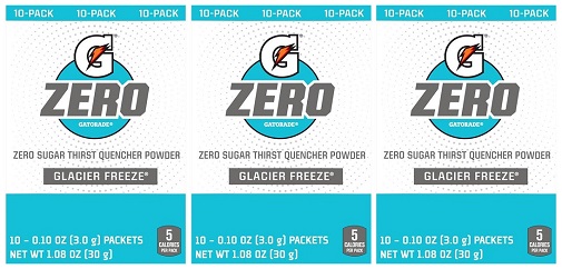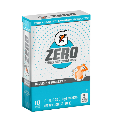 Includes 1 box, each with 10 Packets inside of Gatorade G Zero Sports Drink, Glacier Freeze Flavor