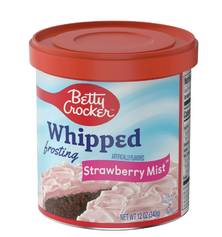 - CONTAINS: One 12 oz tub of Betty Crocker Whipped Artificially Flavored Strawberry Mist Frosting