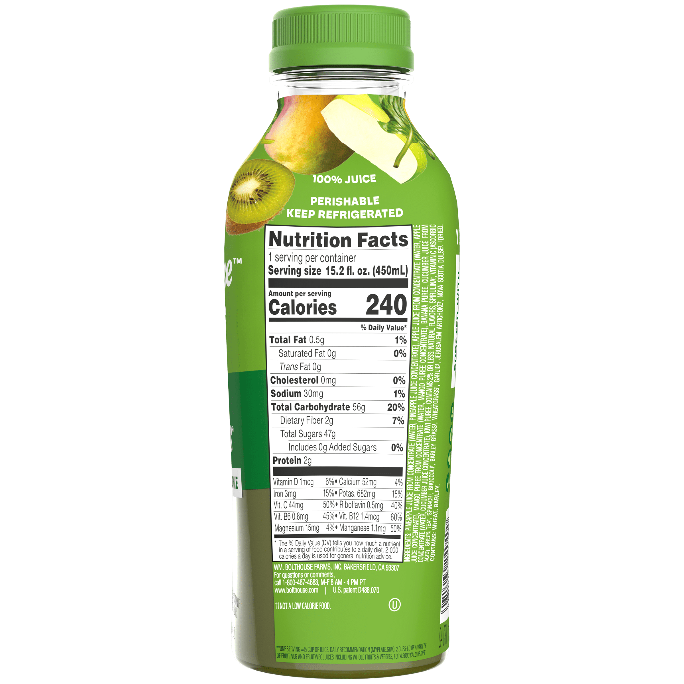 (2 pack) Bolthouse Farms Fruit Juice Smoothie, Green Goodness, 15.2 fl. oz. Bottle