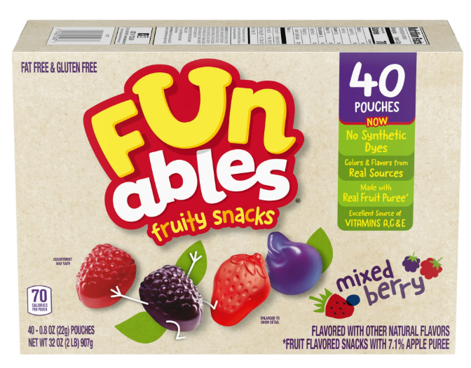 (2 pack) Funables Fruity Snacks, Mixed Berry Flavored Snacks, 0.8 Ounce Pouches, 40 Count
