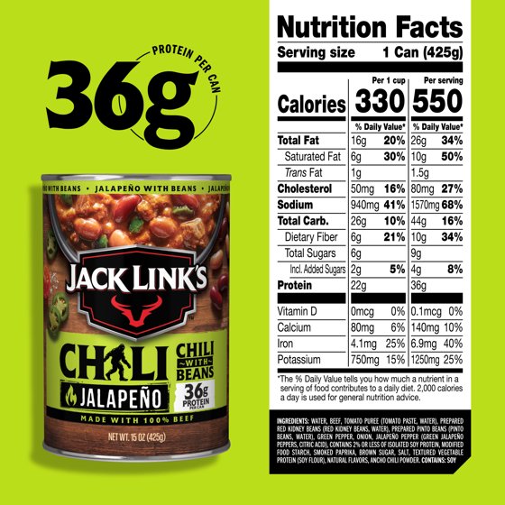 (2 pack) Jack Link's Jalapeno Chili with Beans, 15 Ounce Can, 36 Grams of Protein