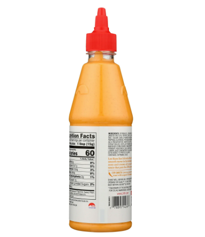 Soybean Oil, Sriracha Chili Sauce (Water, Red Chili Pepper, Distilled Vinegar, Salt, Sugar, Garlic Powder, Xanthan Gum, Paprika Oleoresin, Potassium Sorbate Added as a Preservative), Water, Egg Yolk, Corn Syrup Solids, Distilled Vinegar, Sugar, Salt, Modified Corn Starch, Faba Bean Protein Powder, Mustard Flour, Natural Flavors, Lemon Juice Concentrate, Calcium Disodium EDTA Added to Protect Flavor.