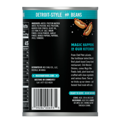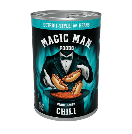 Magic Man Foods is flipping the script on plant-based eating. Founded by Chef Pete LaCombe—creator of Detroit’s first all-vegan Coney Island restaurant, Chili Mustard Onions —we craft bold, craveable plant-based chili with zero compromises. Every can is loaded with flavor, not fillers: no soy, no gluten, no seed oils, no MSG or yeast, no top 9 allergens, and no artificial anything. Our clean-label, non-GMO recipes are chef-driven, family-approved, and ready to heat and eat. This is plant-based chili that proves what’s missing really does matter — one bite, and you’ll believe it. Craving that classic chili dog flavor—without the meat? Magic Man Foods bean-free Detroit-style vegan chili delivers everything you love about traditional chili sauce with a clean plant-based crumble and bold, savory spices. Perfect for topping hot dogs, fries, nachos, or baked potatoes, it lets you enjoy your favorite comfort foods with zero soy, gluten, or Top 9 allergens. A vegan twist on a diner classic, made without compromise.
