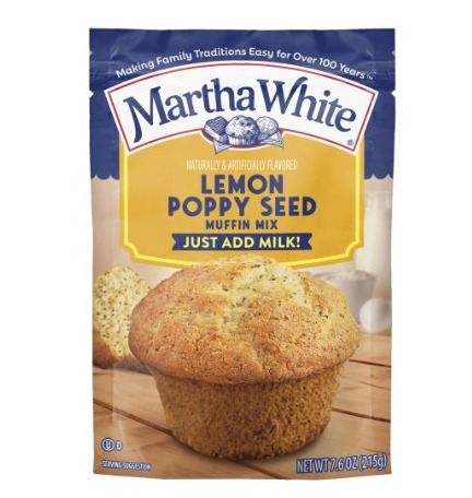 One 7.6 oz bag of Martha White Lemon Poppy Seed Muffin Mix