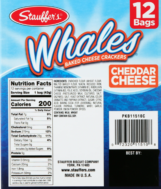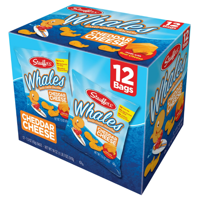 (2 pack) Stauffer's Whales Cheddar Cheese Crackers, 1.5 oz, 12 Count