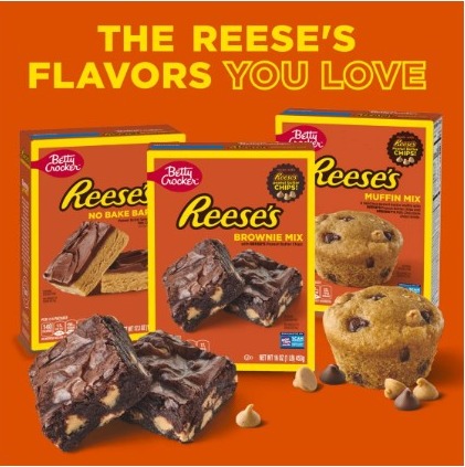 BETTY CROCKER, REESE'S AND HERSHEY'S: Betty Crocker Baking Mix made with REESE'S Peanut Butter chips and HERSHEY'S Milk Chocolate chips