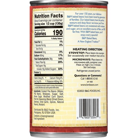 Cooked Pea Beans (Water, Pea Beans), Molasses, Sugar, Salt, Brown Sugar, Modified Corn Starch, Pork Fat, Seasoning Blend (Dried Onion, Dextrose, Dried Garlic, Spices, Natural Flavors), Mustard.