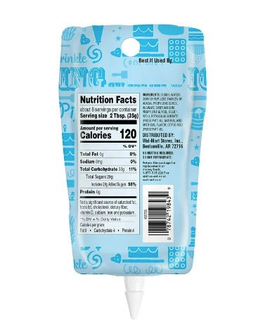 Great Value Blue Cookie Icing is a delightful way to decorate and brighten up your cookies. Simply squeeze the ready-to-use pouch to create delicious treats. Use it to make patriotic star cookies for Independence Day, create the logo of your favorite sports teams, or write your special someone's name in their favorite color. The icing sets up quickly, allowing you to stack your cookies. This cookie icing is available in a variety of colors to match any festive occasion. Add the perfect finishing touch to your sweet treats with Great Value Blue Cookie Icing.