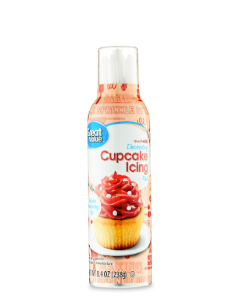 Your desserts will come to life when you use our Great Value Red Decorating Cupcake Icing. This delicious red icing is the perfect addition to your favorite sweet treats. Add petals or hearts to a cupcake, create a decorative border on a sheet cake for Valentine's Day, or write out a special someone's name in their favorite color. With seven servings per 8.4-ounce can and four attachable decorating icing tips, you'll have enough icing and designs to make all of your culinary confections look as great as they taste. Get creative in the kitchen when you use Great Value Red Decorating Cupcake Icing.