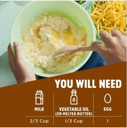 EASY TO MAKE: Simply add milk, egg and oil and stir until blended, then spoon batter into a baking pan, cast iron skillet, or muffin cups and bake until golden brown.