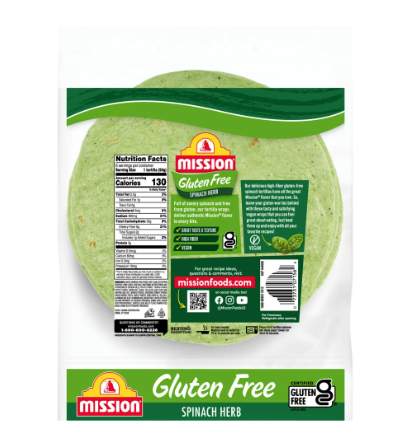 We’ve put a new spin on Gluten Free! Our spinach tortillas are gluten free, high in fiber, and perfect for a vegan diet. Enjoy the same great taste and satisfyingly soft Mission tortillas you know and love, now with a zesty spinach and herb twist and a ton of new tasty ways to ditch gluten for good. Includes one 6 count pack of Mission Gluten Free Spinach Herb Tortilla Wraps.
