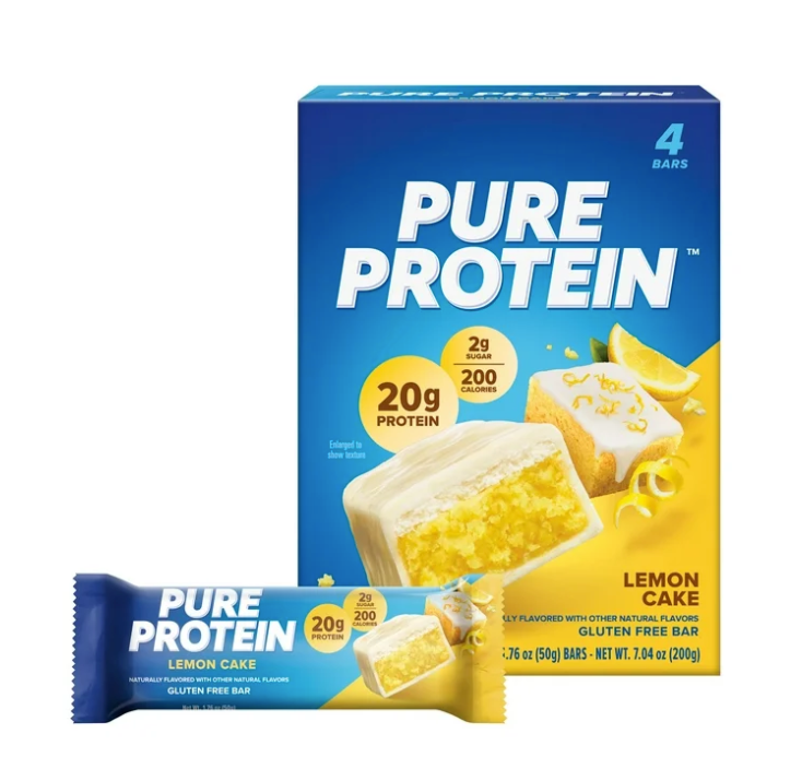 - One 4 count box of Pure Protein Lemon Cake Protein Bars