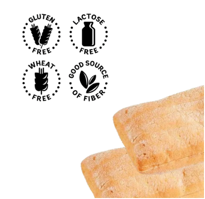Corn Starch, Water Corn Flour, Rice Flour, Psyllium Seed Husk (Vegetable Fiber), Dextrose, Modified Cellulose, Soy Protein, Sunflower Oil, Yeast, Salt, Tartaric Acid, Citric Acid