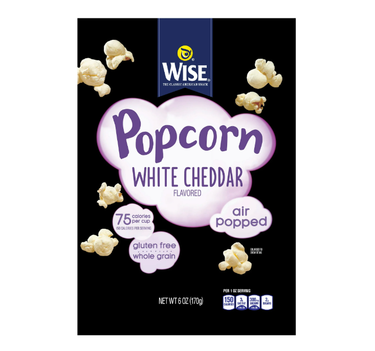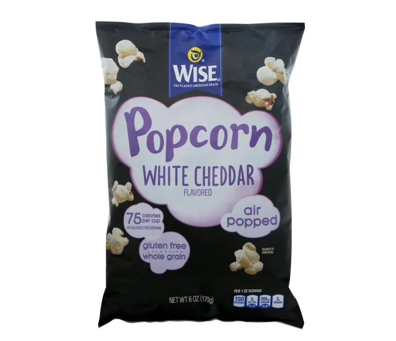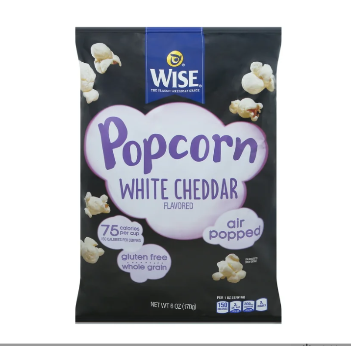 You've Got Good Taste! Well, hello there! The bag you're holding is bursting with mouthwatering wise popcorn. Lightly air-popped. Wise is packed with whole grain, gluten free goodness that's insanely delicious. Our white cheddar is deliciously tangy with the perfect amount of savory sharp cheddar. Enjoy!