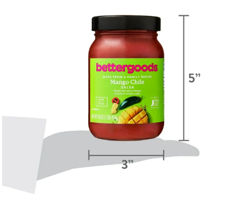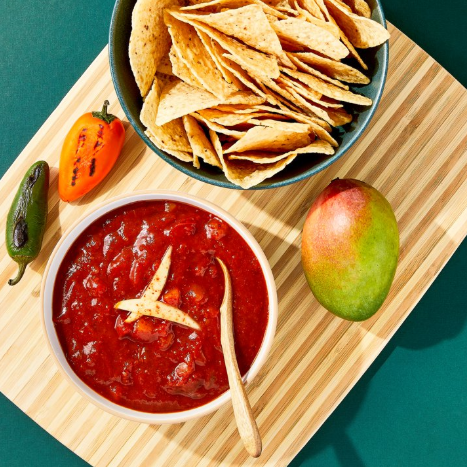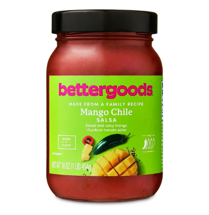 Take your taste buds on a tantalizing journey with the bettergoods Mango Chile Salsa. Our sweet and spicy mango chile salsa features a mix of bright tomato salsa and delicious mango chunks. Whether you're craving a quick snack or planning to elevate a recipe, this mild salsa is an exceptional choice. Enjoy it as a dip for tortilla chips and veggie sticks, drizzle it over fresh fish tacos, or use it to whip up a tasty dressing for your favorite salad. Embrace the versatility of our bettergoods Mango Chile Salsa and let your culinary creativity run wild. Shelf stable, refrigerate after opening.