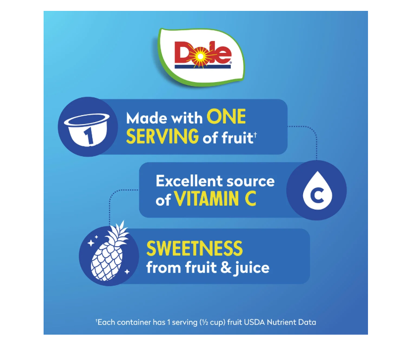 Enjoy 100% All Natural Fruit with Dole: Fruit Bowls, Fruit Juice, Canned Fruit, Jarred Fruit, Frozen Fruit Smoothies, Frozen Acai Bowls, and Frozen Dippers