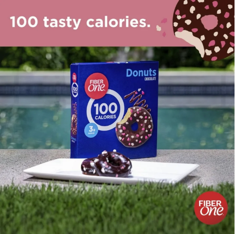 Say yes to great taste and no to compromising. Enjoy an indulgent moment without the guilt with Fiber One 100 Calorie Chocolate Donuts. Each ready to eat treat has 100 calories and 3g of sugar for a fiber snack you can feel good about eating as part of a balanced diet. Each delicious, chocolatey donut contains 14% daily value of fiber and 4.5g of total fat per small donut. Diets high in fiber can help keep your digestive system on track. Choose Fiber One 100 Calorie Chocolate Flavored Donuts as part of breakfast on the go. Make Fiber One Donuts a sweet addition to a lunch box. Keep some at work for any time you crave a quick and easy office snack. Fiber One snacks bring you so many tasty possibilities. Contains one regular cardboard box of Fiber