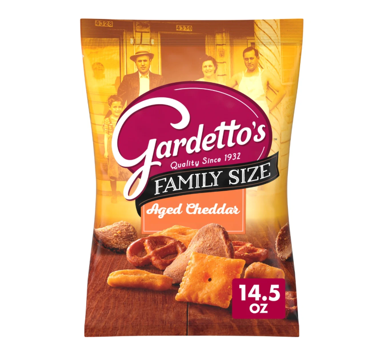Gardetto's Aged Cheddar Snack Mix combines crispy breadsticks, salted pretzels, roasted rye chips, and cheddar crackers for a savory, flavorful snack. Inspired by a family recipe, each bite delivers a satisfying crunch with zesty, aged cheddar seasoning. Perfect for game nights, parties, or on-the-go snacking.