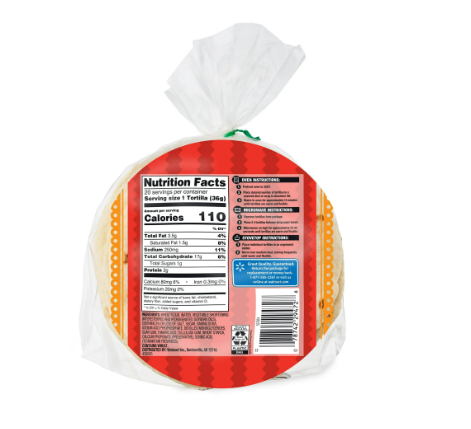 Stovetop - From Ambient **1. Place individual tortillas in an ungreased skillet. **2. Warm over medium heat, turning frequently until warm and flexible. **Microwave - From Ambient **1. Remove tortillas from package. **2. Place 2-4 tortillas between damp paper towels. **3. Microwave on high for approximately 20-30 seconds until tortillas are warm and flexible. **Oven cook - From Ambient **1. Preheat oven to 325°F. **2. Place desired number of tortillas in a covered dish or wrap in aluminum foil. **3. Warm in oven for approximately 10 minutes until tortillas are warm and flexible.
