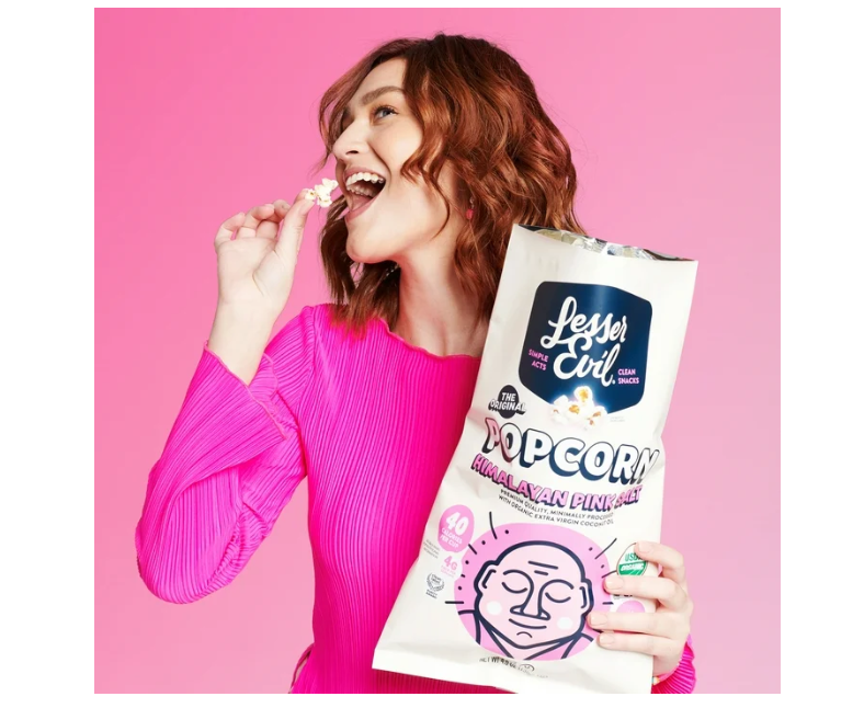 LesserEvil Organic Popcorn, Himalayan Pink,is gluten-free and made with only the best ingredients– Organic Non-GMO Popcorn, Organic Coconut Oil, and Himalayan Pink Salt. Fluffy with a crunch, this popcorn will satisfy salty cravings without any harmful additives. We make ours with minimal processing for your maximum snackability.