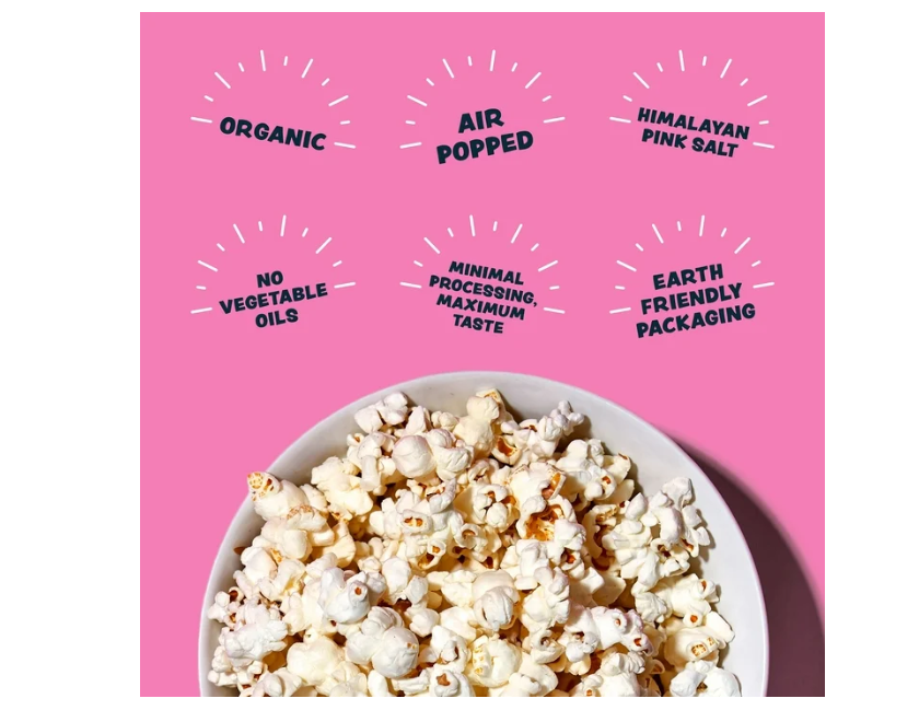 A handful of popcorn, a handful of ingredients, a healthy and organic snack for all. Simply organic popcorn, organic extra virgin coconut oil, and Himalayan pink salt. No harmful oils here!