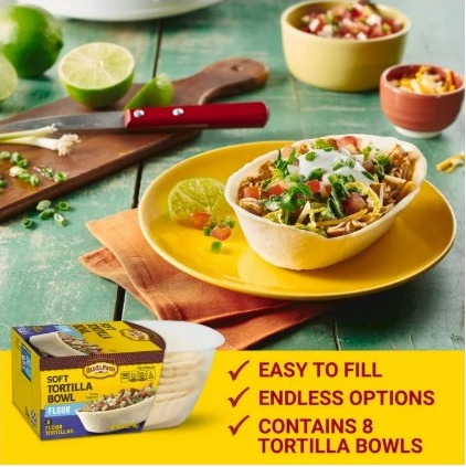 Old El Paso Soft Tortilla Bowls make it fun to spoon in your favorite taco fillings. Easy to fill, hold, and eat, you can have a quick and easy dinner option on the table. Just fill the soft tortilla shells with your favorite ingredients and enjoy a taco bowl that you can eat. Tonight, we taco!For more than 80 years, Old El Paso has been bringing families and communities together to celebrate old and new traditions around delicious, Mexican-inspired flavors. We believe that any night can be a taco night, and we're here to help make it a little easier and a lot more delicious. Our variety of crispy hard taco shells, tasty soft tortillas, flavorful seasonings, and much more help make taco night fun. CONTAINS WHEAT INGREDIENTS.