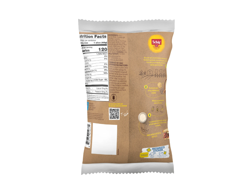 The true artisanal techniques and superior ingredients lead to a uniquely superb New York style texture and taste in our deli style gluten free sourdough bread. Enjoy our sandwich bread right out of the package, no toasting required. These hearty, extra-large slices are perfect for all your favorite deli sandwiches. Each deli bread slice is Monash certified, Certified Gluten-Free (AOECS), Non-GMO, Low-FODMAP, and a good source of fiber. Made with a sourdough base, Schar gluten free bread is good for your taste buds, and your gut! Store in a cool, dry place. Enjoy right out of the package. No toasting required. Packed in a modified atmosphere with oxygen absorber. Previously frozen. Do not refreeze.