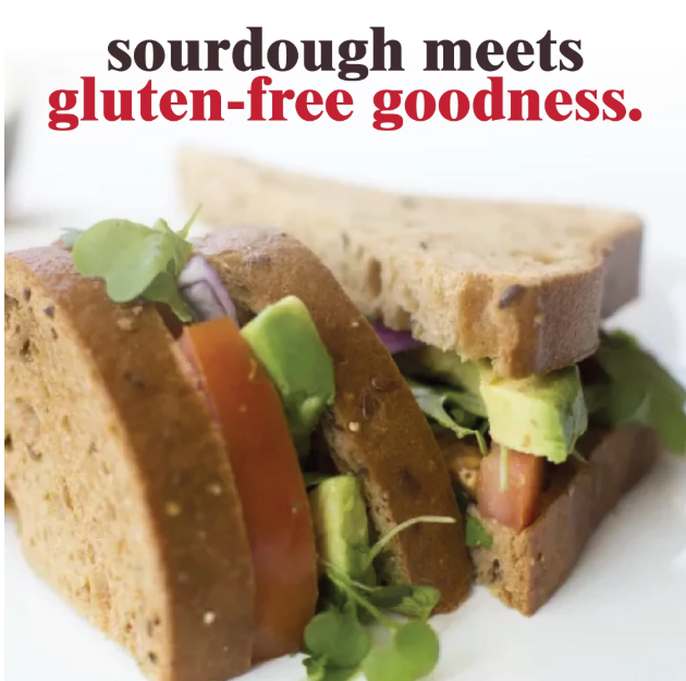 Corn Starch, Water, Sourdough (Rice Flour, Water), Buckwheat Flour, Rice Flour, Rice Syrup, Psyllium Seed Husk (Vegetable Fiber), Rice Starch, Sunflower Oil, Soy Protein, Sorghum Flour, Modified Cellulose, Yeast, Salt, Sugar