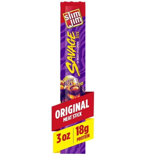 Each Slim Jim Original Savage Size Meat Stick brings a bold, savory flavor for satisfying snacks