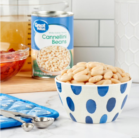Great Value Cannellini Beans also known as White Kidney Beans, are the perfect addition to make any hearty dish come to life. These white kidney beans can be microwaved and seasoned for a standalone dish, pureed into a bean dip, mixed into your favorite soups and salads, or included in some of your traditional recipes to increase the nutritional value of your meals. Whichever recipe you choose, you can be confident you're providing your family with the flavors and nutrients they deserve. These beans offer nutritional benefits as they are a good source of dietary fiber, protein, iron and potassium. These beans come loaded in a shelf stable can, making it easy to stock up. Enjoy a filling and delicious side with Great Value Cannellini Beans.