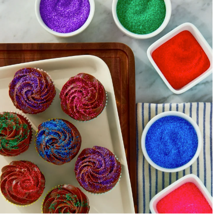 - Purple sanding sugar adds a pretty pop of sweetness to any treat